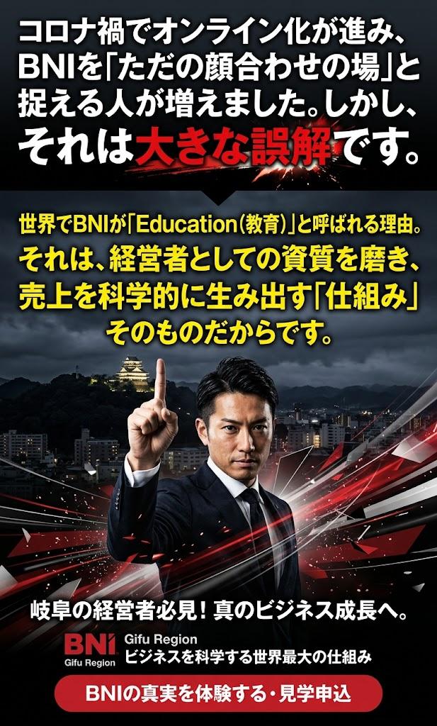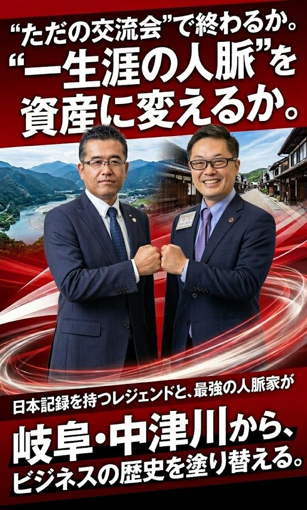 「彼が動けばビジネスの景色が変わる」——業界でそう評される圧倒的な実績とリーダーシップは、リニア時代を見据えた中津川の地で、参加者を新たなステージへと確実に引き上げる最大の推進力となるだろう。